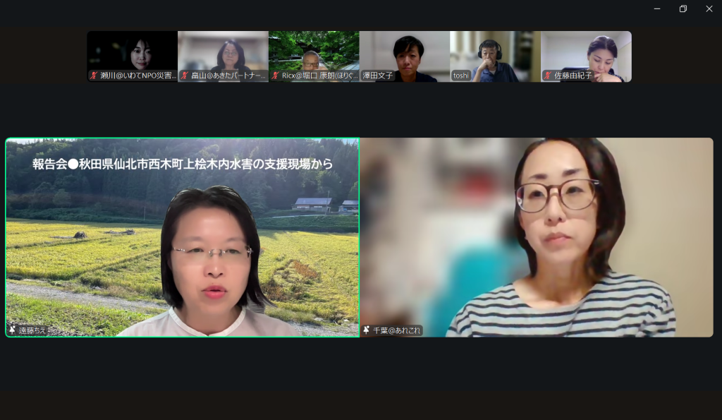 2025年10月2日(木)、オンラインで開催された「秋田県仙北市西木町上桧木内水害の支援現場から」の報告会に参加しました。開催にあたりINDSも協力団体として関わらせていただいておりました。